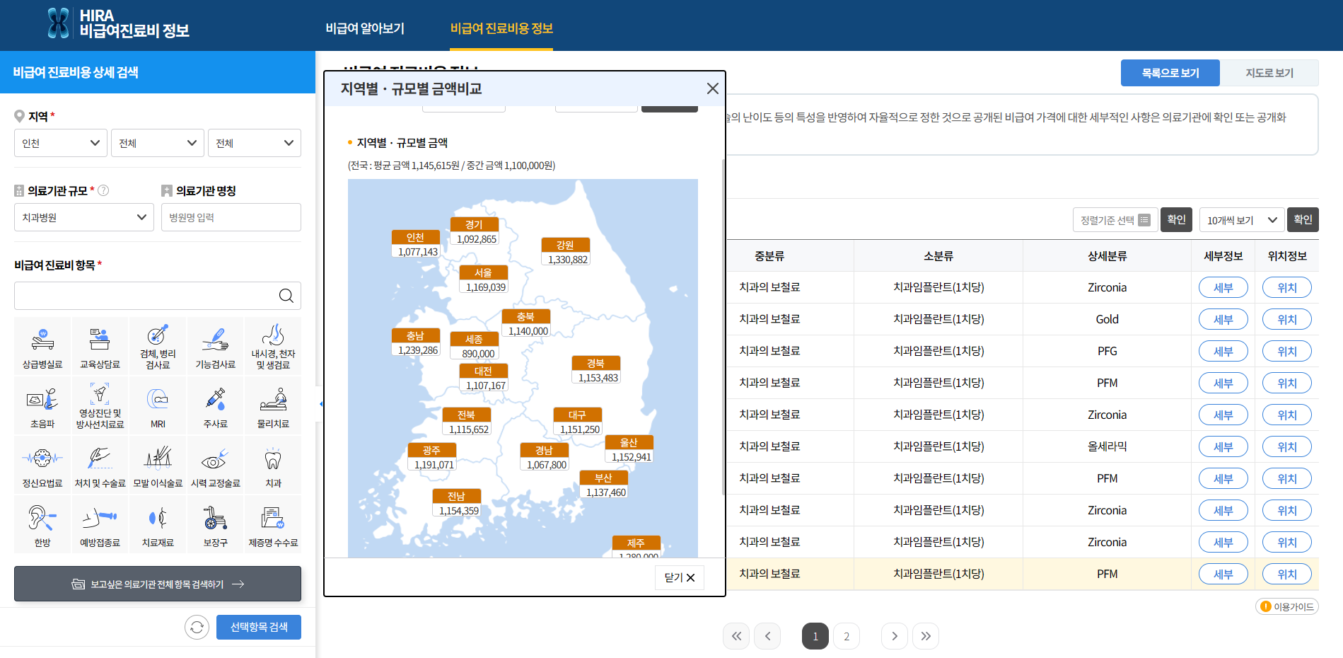 지역과 병원을 선택해 비용을 찾아보실 수 있습니다.